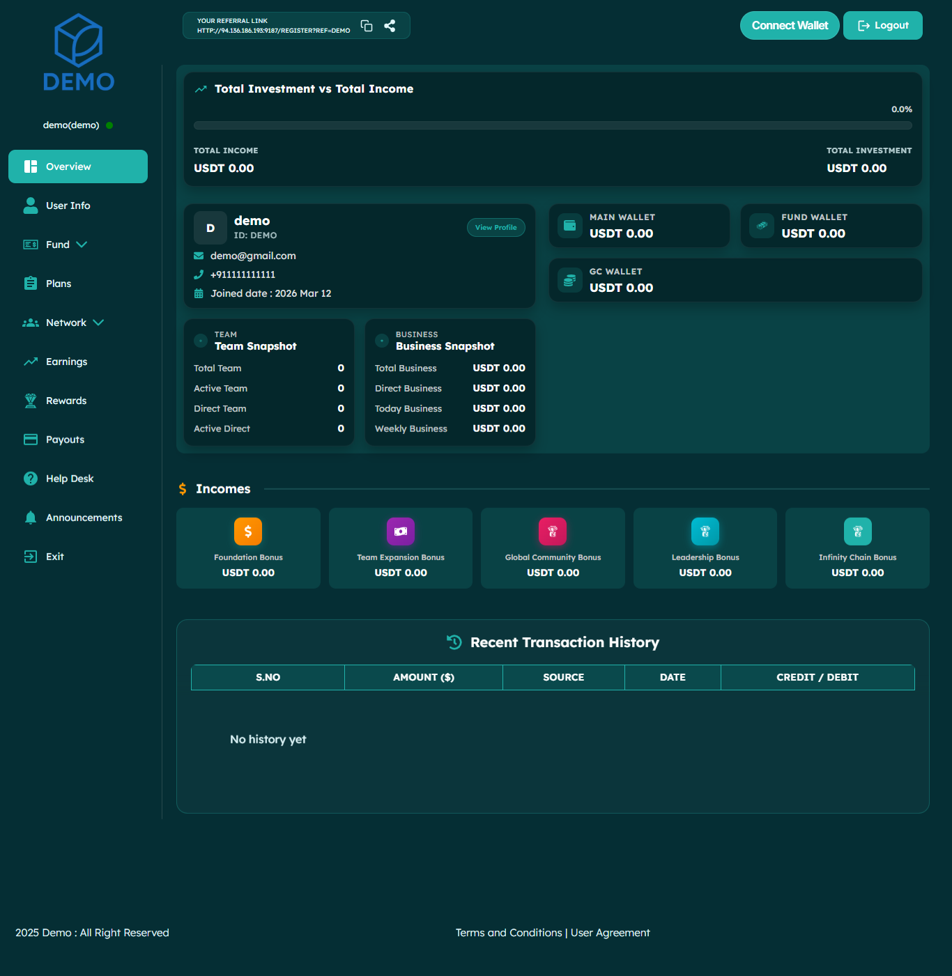 MLM Software With Demo is a powerful and lightweight software that makes it easier to manage and track your Multi-Level Marketing business. Our software lets you set up your affiliate system in minutes, track bonuses and commissions, automate payment processing, and much more.