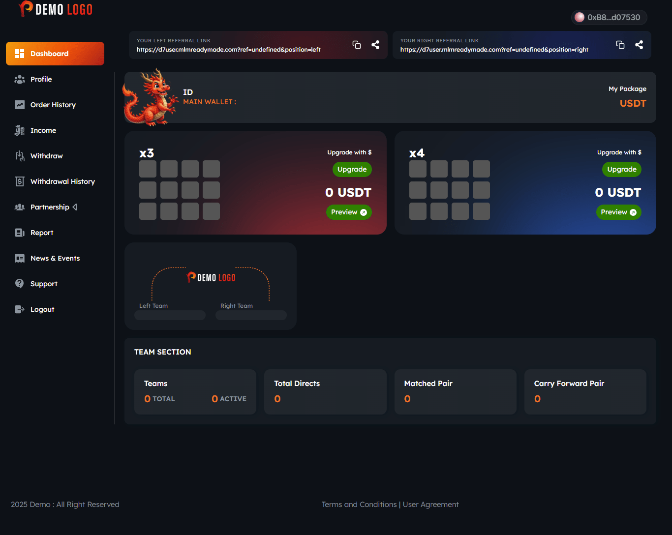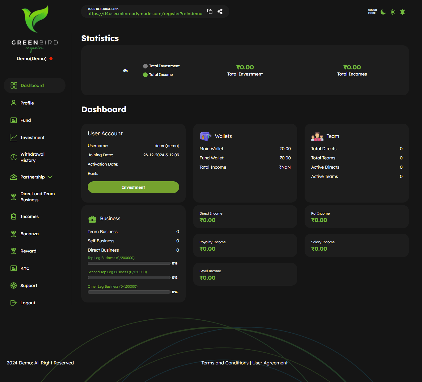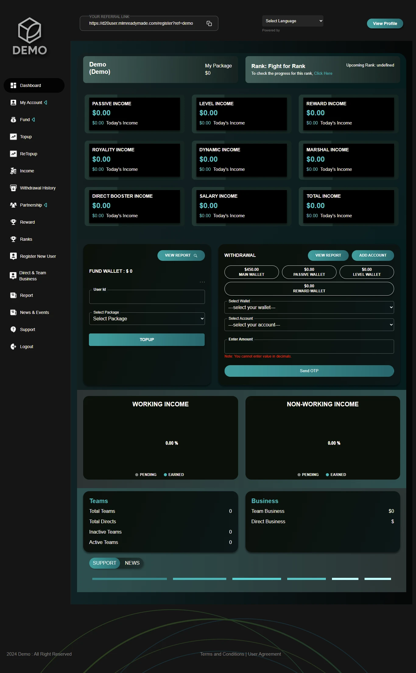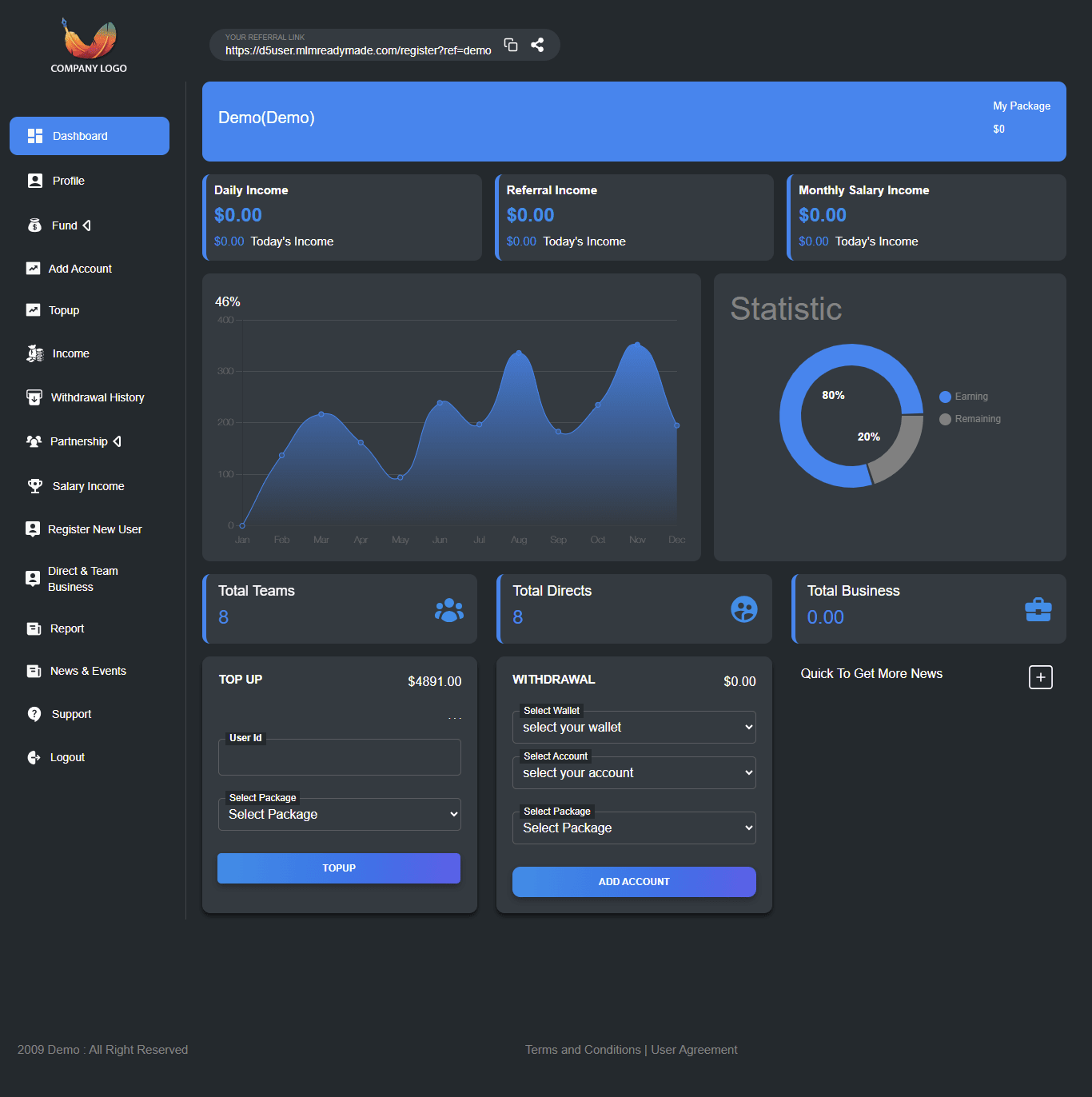 MLM Software With Demo is a powerful and lightweight software that makes it easier to manage and track your Multi-Level Marketing business. Our software lets you set up your affiliate system in minutes, track bonuses and commissions, automate payment processing, and much more.